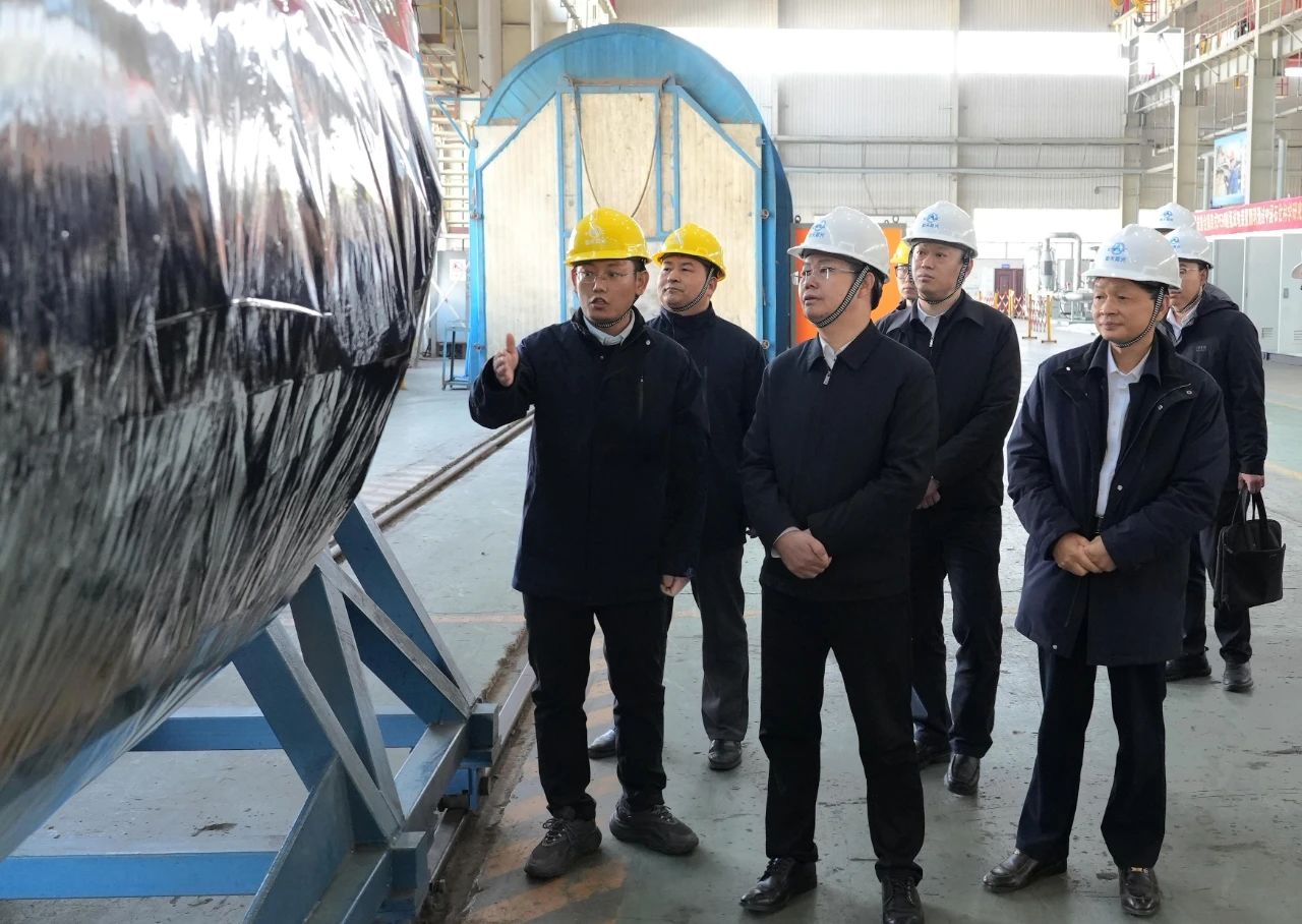 當(dāng)天,陳錫明一行深入航天晨光一線生產(chǎn)車間和重點(diǎn)實(shí)驗(yàn)室,現(xiàn)場(chǎng)了解航天晨光后勤保障裝備、航天防務(wù)配套以及氫能等產(chǎn)業(yè)發(fā)展情況。
